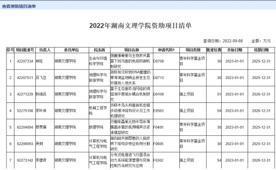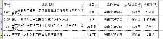 (科研院 张建军)近日,国家自然科学基金委员会和全国哲学社会科学工作办公室先后公布了2022年度国家自然科学基金项目、国家社科基金项目立项名单,湖南文理学院喜获国自科项目立项7项、国社科项目立项4项,共计11项立项资助,在全省同类院校中居于前列。